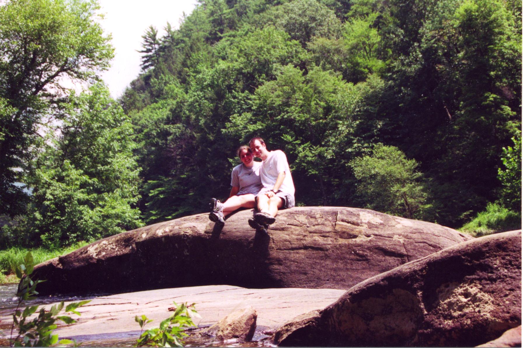![]() A view of the Greenbrier River taken from our mountain biking trip | ![]() Us on a rock in the Greenbrier River taken while on our biking trip |