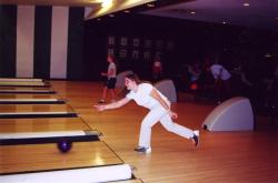 ![]() Us before dinner in the main dining room. This picture was taken by the Greenbrier professional photographer. | ![]() Jen bowling at the Greenbrier's bowling alley (I'm sure it was a strike) |